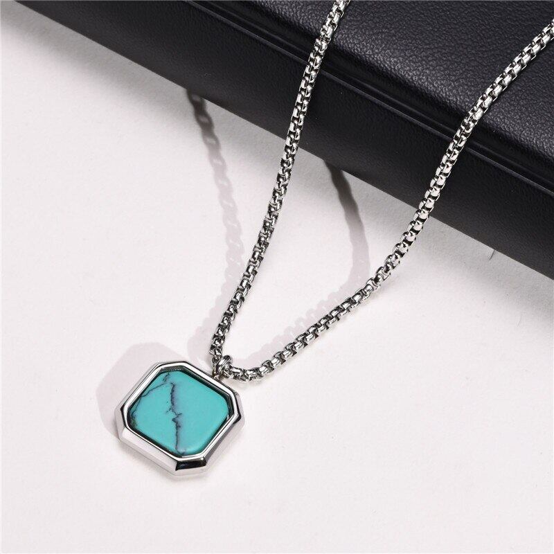 送料無料 KOTiK スクエア天然石ネックレス男性シルバーカラーステンレス鋼幾何ペンダント少年男性ギフトジュエリー レース ナチュラル 銀 スクウェア AE121266778832706919081