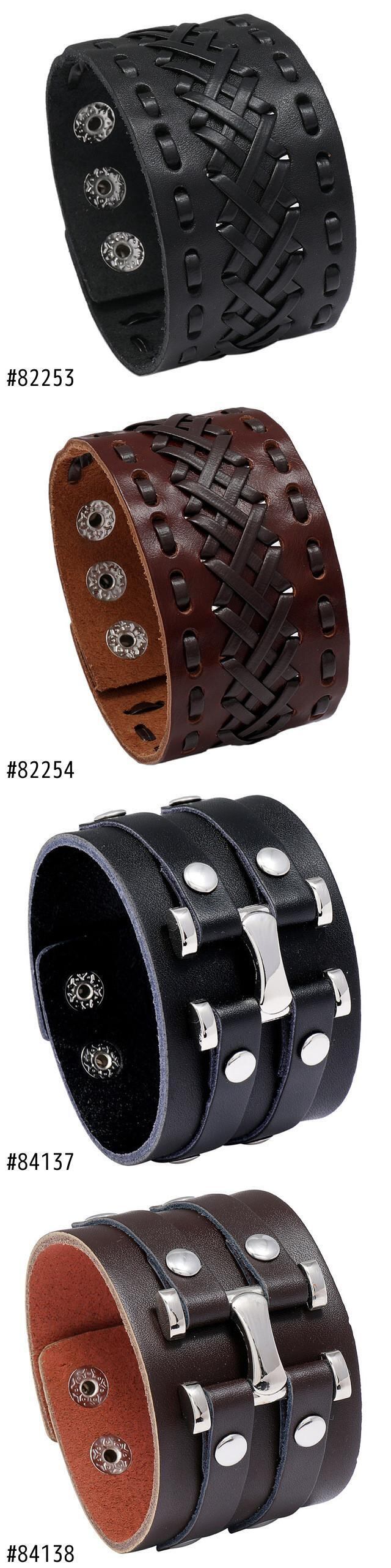 送料無料 KOTIK 2023 本革ワイドカフバングルパンクヴィンテージ三層ワイドブラックブラウン男性ジュエリーブレスレット レザー 天然 ビンテージ AE121266778826609169437