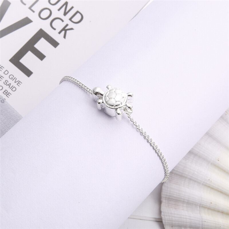 送料無料 KOtik アンクレット女性男性アンティークシルバーカラータートルロープ足首ブレスレットビーチチェーン動物亀足ジュエリー 銀 AE121266778876609478728