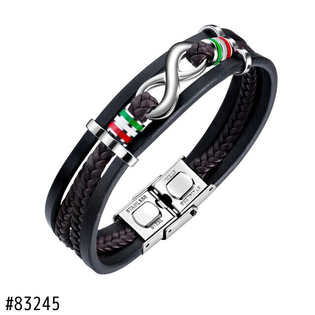送料無料 KOtik 2023 ステンレススチール インフィニティ ブレスレット 多層本革ブレスレット メンズ レザー 天然 AE121266778888451384481