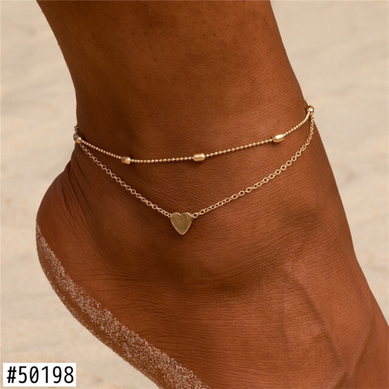 送料無料 自由奔放に生きるゴールドカラー電話チェーンブレスレットアンクレットチャームヘビ/ヒトデ/ハートセクシーな脚足首足チェーンビーチジュエリー AE12126677883696514277
