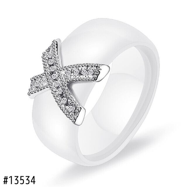 送料無料 KOtik ジュエリー女性リング AAA クリスタル 8 ミリメートル X クロスセラミックリング女性の結婚指輪ギフト AE121266778836562284443