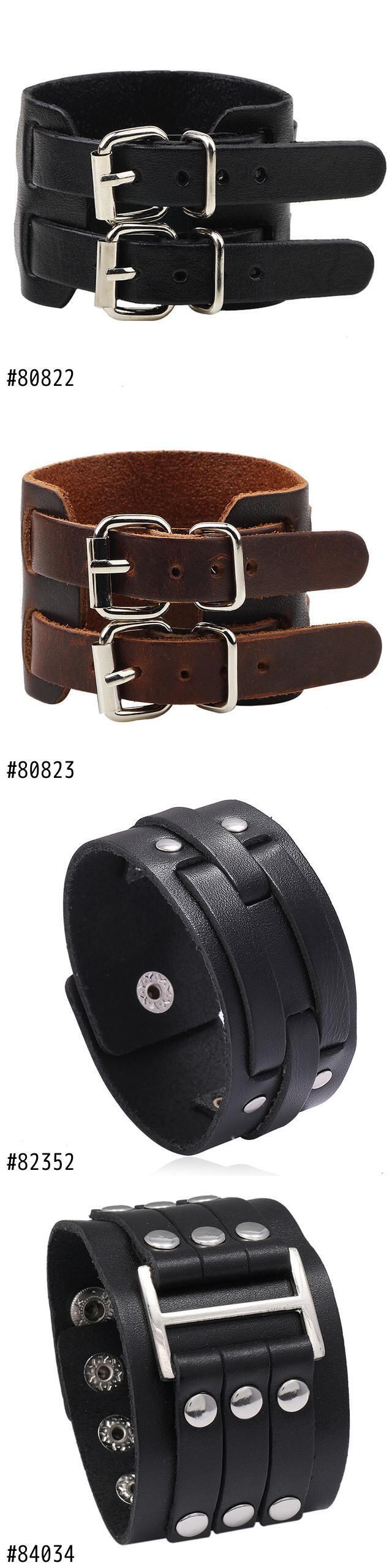 送料無料 KOTIK ブラックブラウン本革ブレスレット男性パンクヴィンテージワイドカフブレスレットジュエリー レザー 天然 ビンテージ AE121266778884720746330