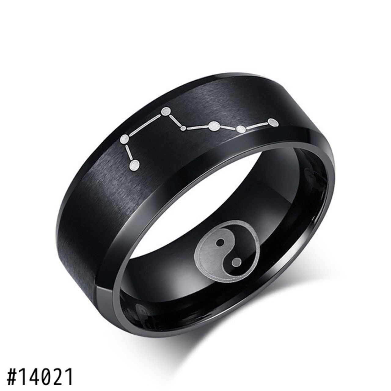 送料無料 KOtik 黒 316L ステンレス鋼北斗七星リング男道教太極拳陰陽ジュエリーギフト ブラック 指輪 AE121266778826179646268