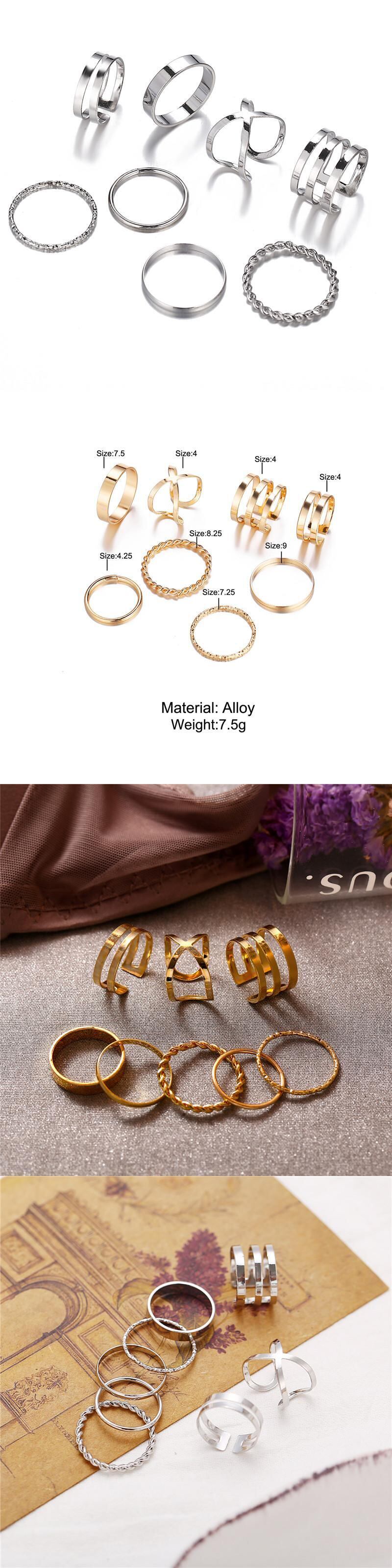 送料無料 KOTiK 8 ピース/セットボヘミアン幾何学リングセット女性ガールズゴールドカラークロスツイストオープン結婚指輪ジュエリーギフト AE121266778860919587672