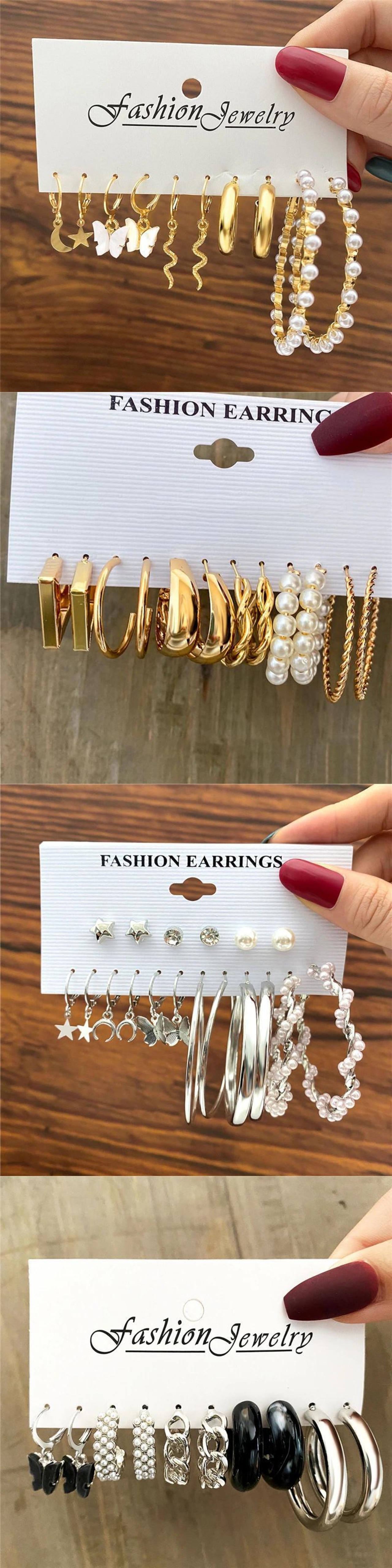 送料無料 KOTiK シルバーカラーパールイヤリングセット女性ヴィンテージパンク幾何学的なスネークハートイヤリング金属蝶ジュエリー 真珠 指輪 銀 ビンテージ AE1212667788624942453