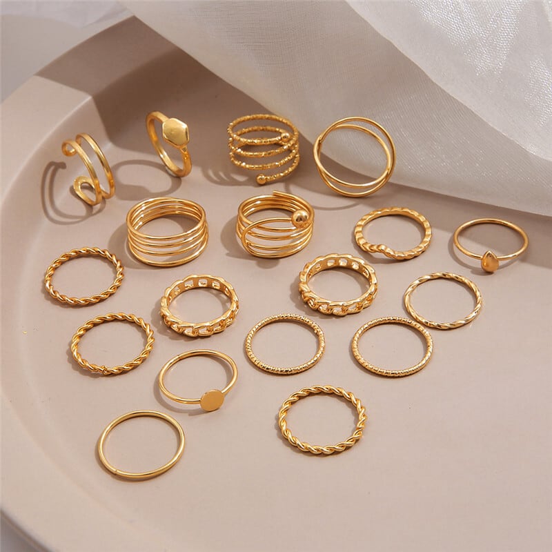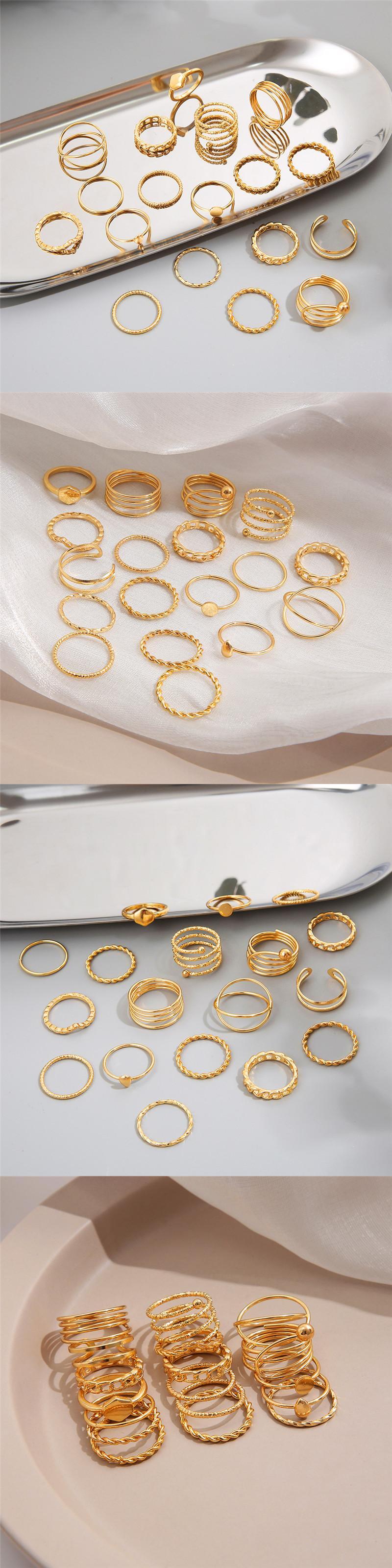 送料無料 18 個ゴールドカラーメタルリングセットツイスト中空リング女性パンクヴィンテージ結婚指輪幾何学的なトレンディなジュエリーアクセサリー ビンテージ AE121266778888711670210