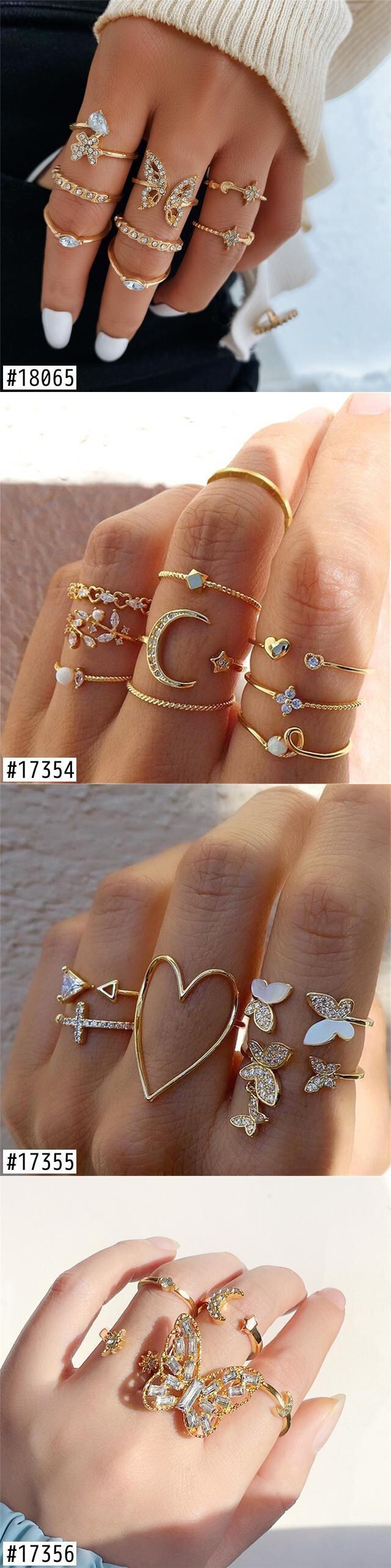 送料無料 KOTiK ヴィンテージボヘミアクリスタル蝶の花マルチ要素リングセット女性男性指リングジュエリーギフト 指輪 フラワーデザイン ビンテージ AE121266778829809205257