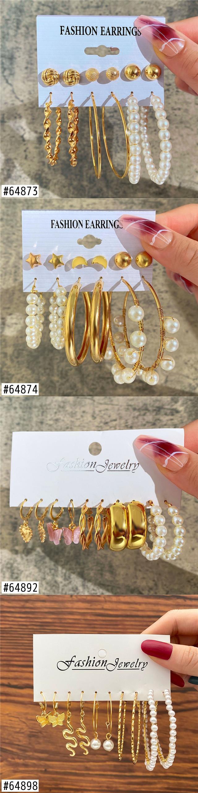 送料無料 KOTiK ゴールドカラーパールイヤリングセットメタルブラブライヤリングヴィンテージサークル幾何ツイスト女性トレンディなジュエリーギフト 真珠 指輪 ビンテージ AE121266778838569591678