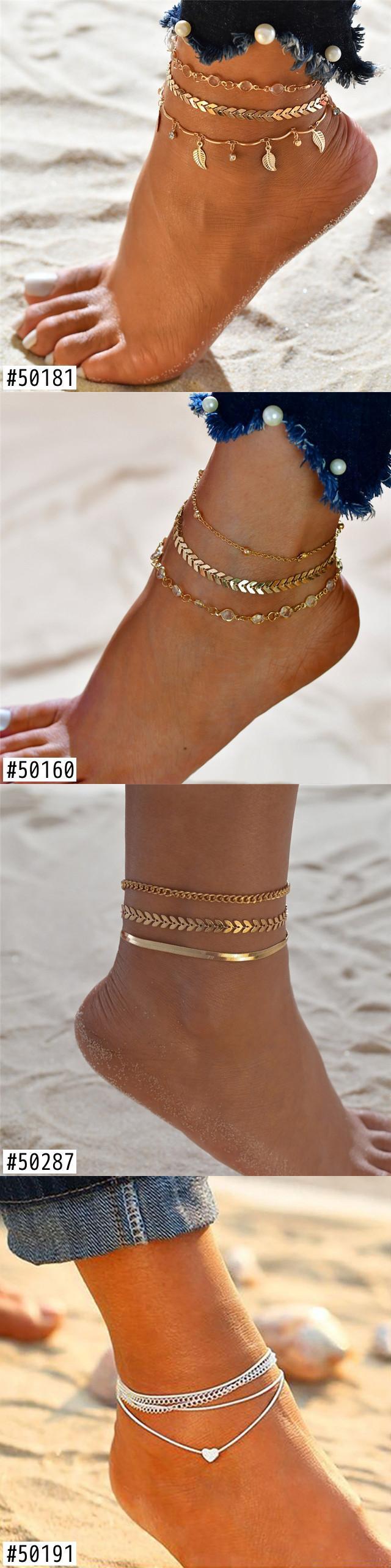 送料無料 KOTiK アンクレットシンプルなシルバーカラーのハート裸足かぎ針編みサンダルフットジュエリー二層ブレスレットアンクレット女性 靴 シューズ 銀 AE121266778818595353867