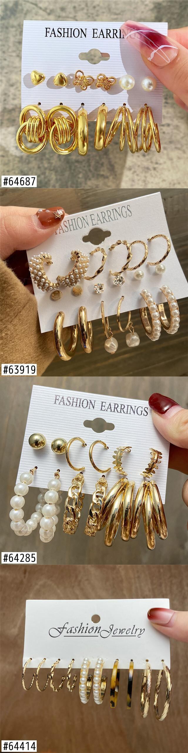 送料無料 KOTiK パンクヴィンテージ幾何学パールイヤリングセットゴールドカラーハート蝶女性ビッグラウンドパーティージュエリーギフト 真珠 ビンテージ AE121266778814084038821