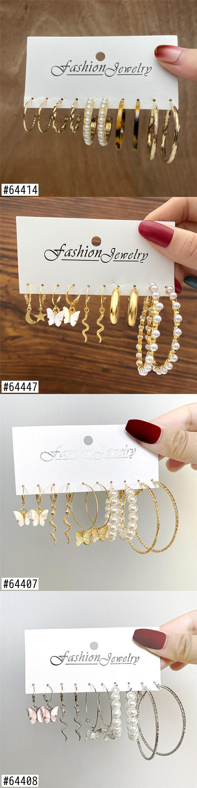 送料無料 KOTiK ボヘミアンゴールドカラースネークバタフライイヤリングセット女性ビッグラウンドパールブラブライヤリングトレンドジュエリー 真珠 指輪 AE121266778856528243853