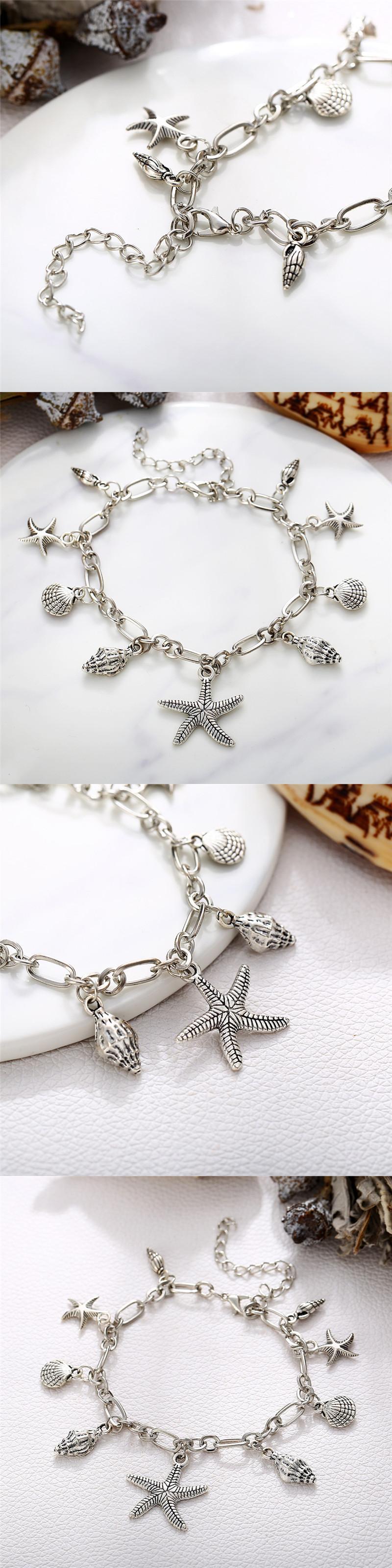 送料無料 ヴィンテージ夏のヒトデアンクルブレスレット女性シルバーカラーシェル巻き貝チャーム自由奔放に生きるアンクレットチェーン脚裸足ジュエリー サマー 夏物 銀 ビンテージ AE121266778870010956833