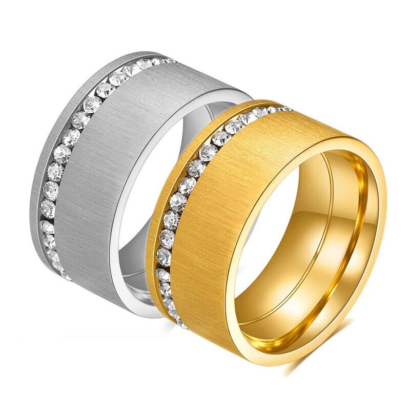 送料無料 KOTIK 2023 パンクゴールドカラーステンレス鋼婚約指輪女性男性ホワイトキュービックジルコニアウェディングジュエリーギフト リング 風信子石 AE121266778819310563186