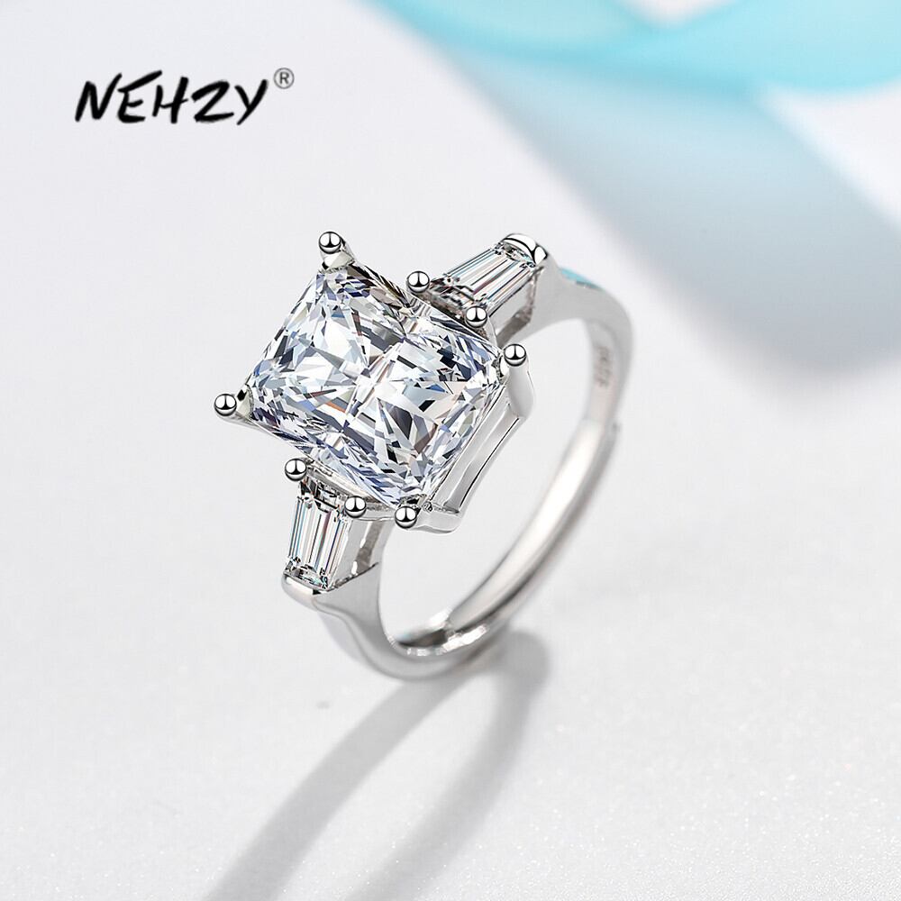 送料無料 NEHZY シルバーメッキ 2022 レディース ジュエリー キュービックジルコニア スクエア オープン リング サイズ調整可能 アジャスタブル 指輪 銀 スクウェア 風信子石 AE121233225517396139976