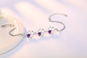 送料無料 NEHZY シルバーメッキジュエリーブレスレット中空花柄パープルクリスタルハートブレスレット長さ 20 センチメートル フラワーデザイン 銀 AE121233225595765503496