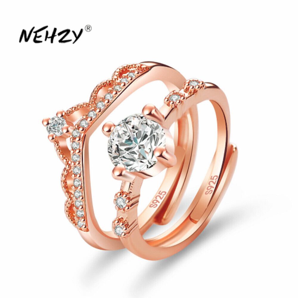 送料無料 NEHZY シルバーメッキ新しい女性ファッションジュエリーキュービックジルコニアクラウンゴールドローズゴールドセールオープンカップルリング 指輪 銀 風信子石 AE121233225550668579662