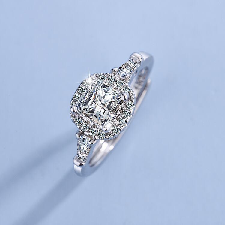 送料無料 NEHZY シルバーメッキ女性ジュエリーキュービックジルコニアスクエア 4 本爪オープンリングサイズ調整可能 アジャスタブル 指輪 銀 スクウェア 風信子石 AE121233225587466450588