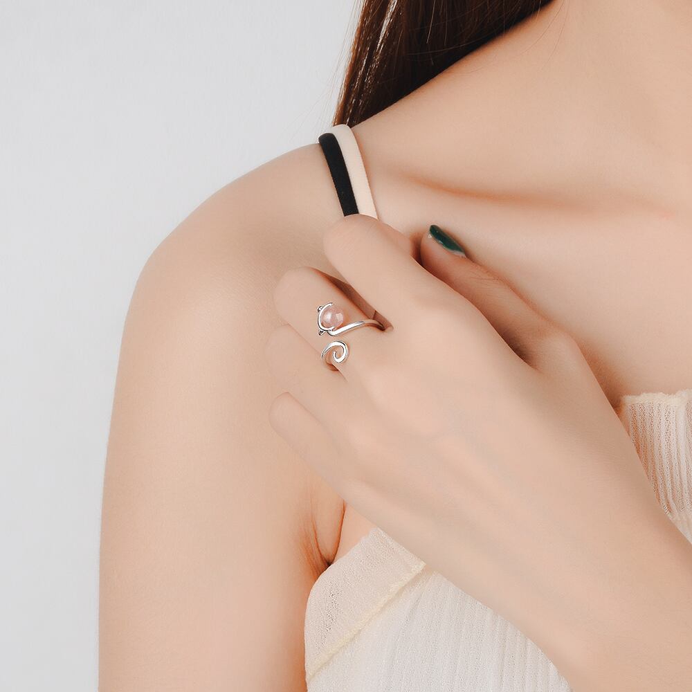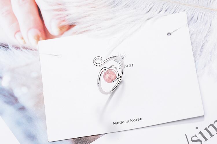 送料無料 NEHZY シルバーメッキ女性ジュエリーキュービックジルコニアピンク瑪瑙子猫リングサイズ調節可能なオープンリング アジャスタブル 指輪 銀 風信子石 AE121233225572963467882