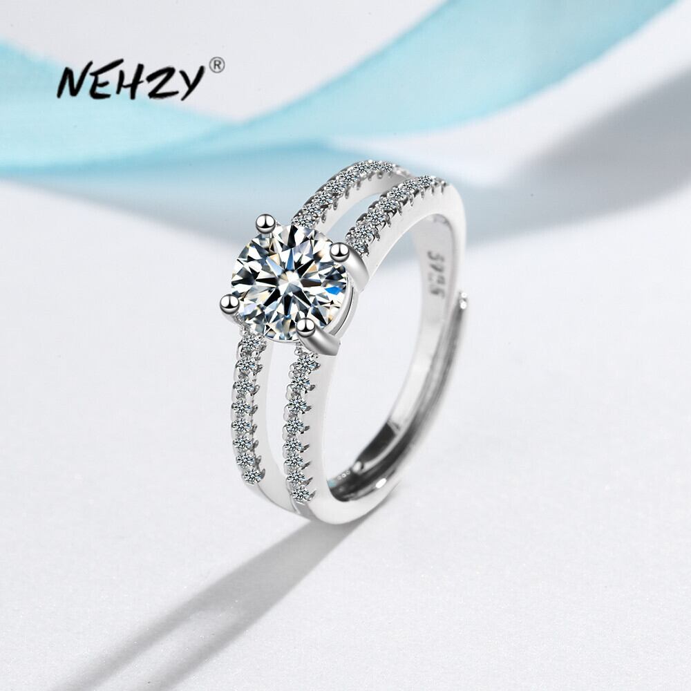 送料無料 NEHZY シルバーメッキ新レディースファッションジュエリーキュービックジルコニア中空ラウンド 4 爪調節可能なオープニングリング アジャスタブル 指輪 銀 風信子石 AE121233225586179899161