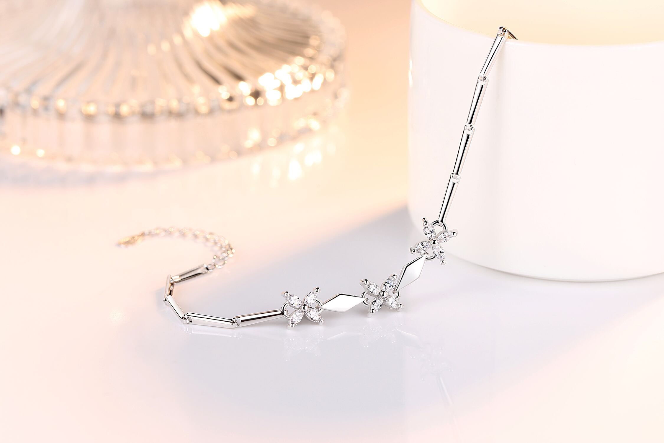 送料無料 NEHZY シルバーメッキ レディース ジュエリー キュービックジルコニア 四つ葉のクローバー フラワー ブレスレット 長さ 15.5 + 4 フラワーデザイン 銀 風信子石 AE12123322557153065815