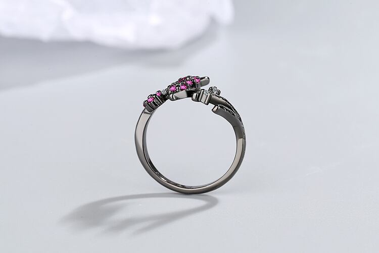 送料無料 NEHZY シルバーメッキ女性ジュエリーキュービックジルコニア枝花ブラックオープンサイズ調節可能なリング アジャスタブル 指輪 フラワーデザイン 銀 風信子石 AE121233225598105997872