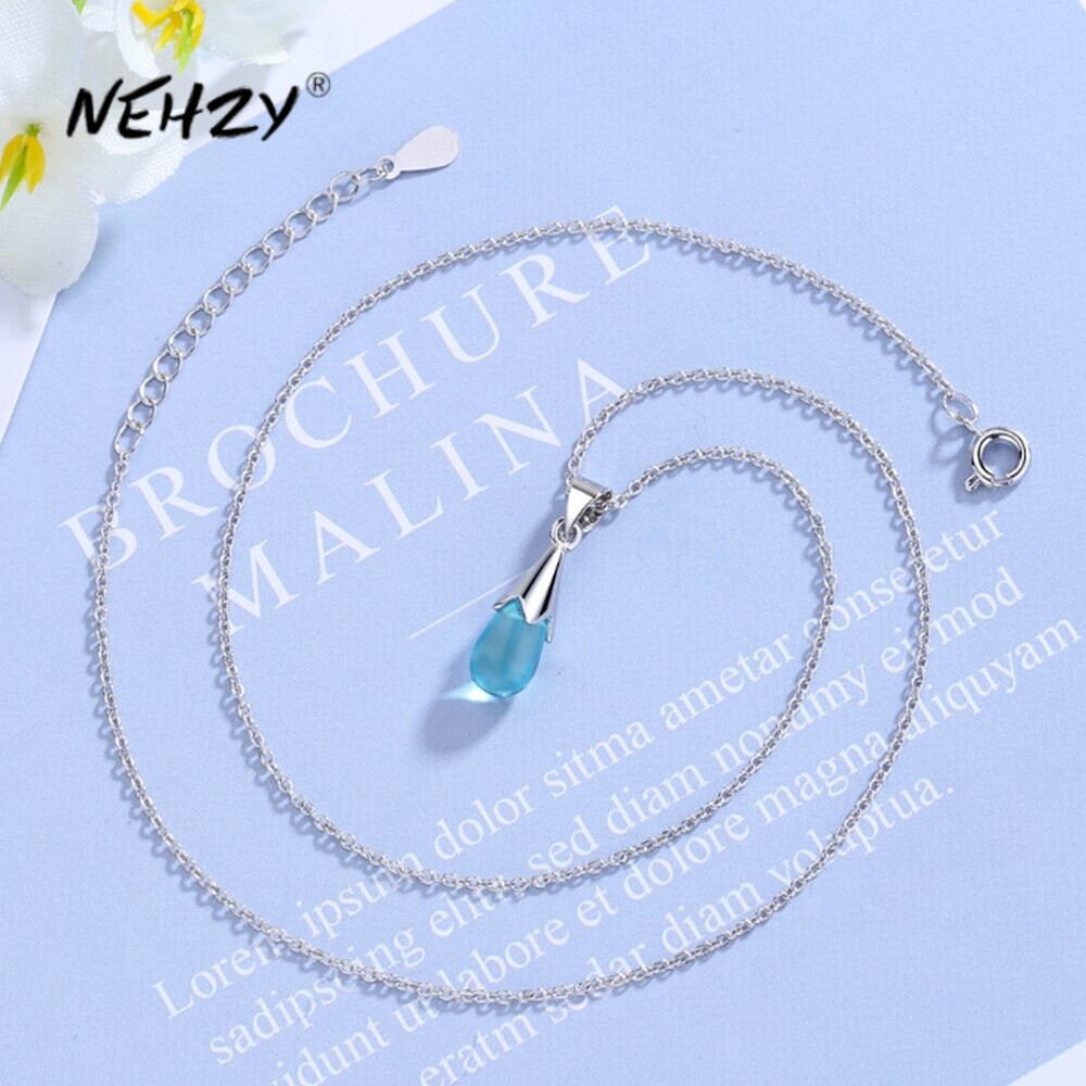 送料無料 NEHZY 925 シルバー針女性ジュエリーブルーキュービックジルコニアホットペンダントネックレス長さ 43.5 センチメートル レース 銀 風信子石 AE121233225557875783333