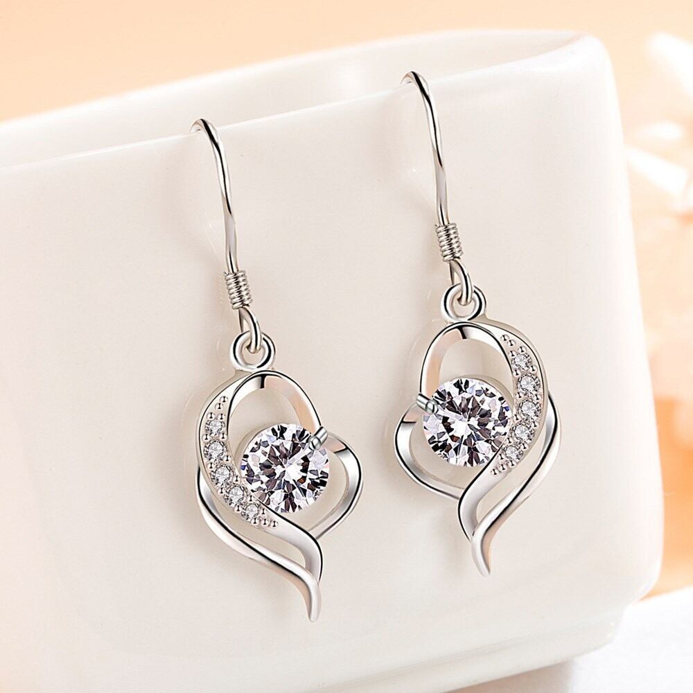 送料無料 NEHZY シルバーメッキレディースジュエリーキュービックジルコニアハート型中空ロングテルフックイヤリング 指輪 銀 風信子石 AE121233225512924941027