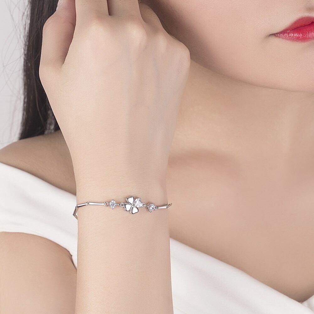 送料無料 NEHZY シルバーメッキ新レディースファッションジュエリーキュービックジルコニア四つ葉のクローバーフラワーブレスレット長さ 16.5 センチメートル フラワーデザイン 銀 風信子石 AE121233225520626438958