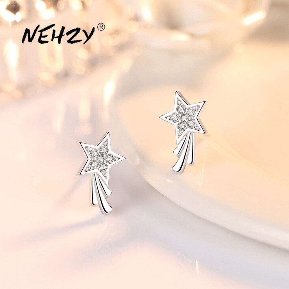 送料無料 NEHZY 925 シルバー針スタッドピアス女性ジュエリーレトロシンプルな五芒星クリスタルジルコンイヤリング 指輪 銀 AE121233225581990473218
