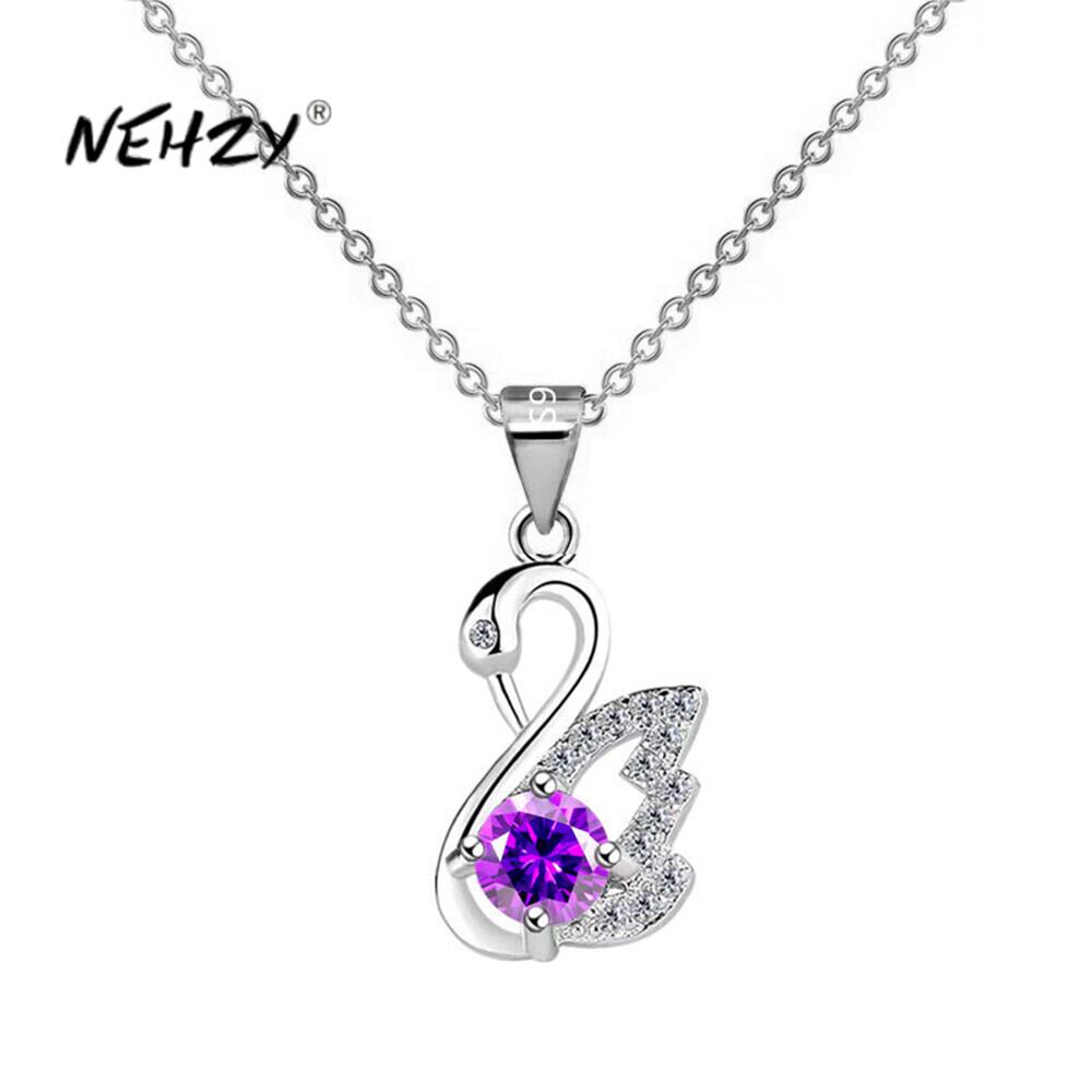 送料無料 NEHZY シルバーメッキ新しい女性ファッションジュエリーパープルキュービックジルコニア白鳥ペンダントネックレス長さ 45 センチメートル レース 銀 風信子石 AE121233225533624584158