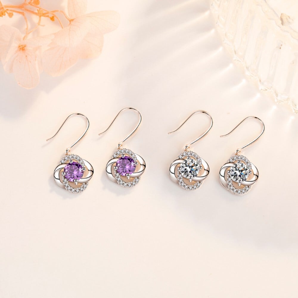 送料無料 NEHZY シルバーメッキレディースジュエリーパープルキュービックジルコニアフラワー四葉クローバーロングテルイヤリング 指輪 フラワーデザイン 銀 風信子石 AE121233225518262351865