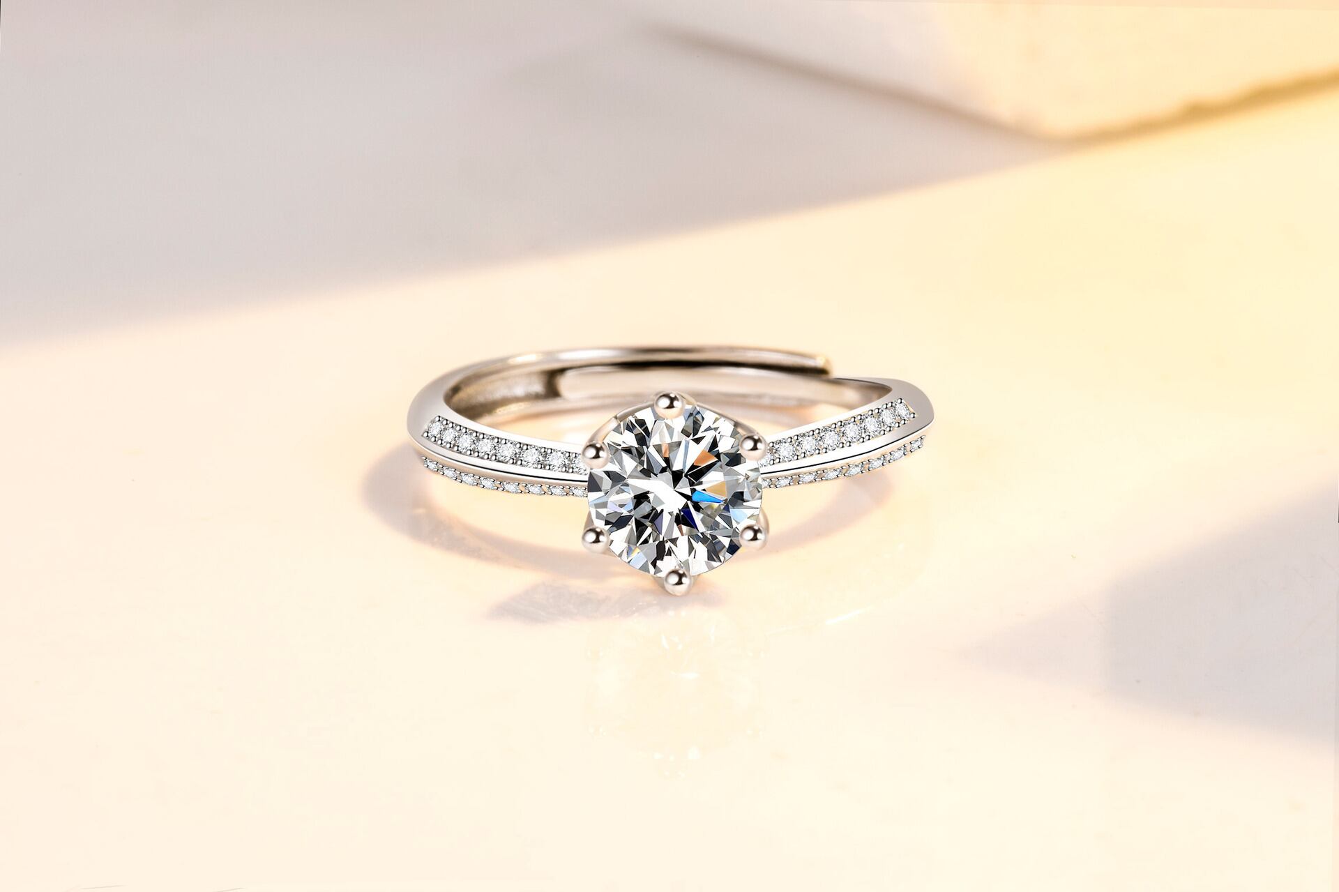 送料無料 NEHZY シルバーメッキ女性ジュエリーキュービックジルコニア 6 プロングクラウン開口部調節可能なサイズリング アジャスタブル 指輪 銀 風信子石 AE121233225570759680358