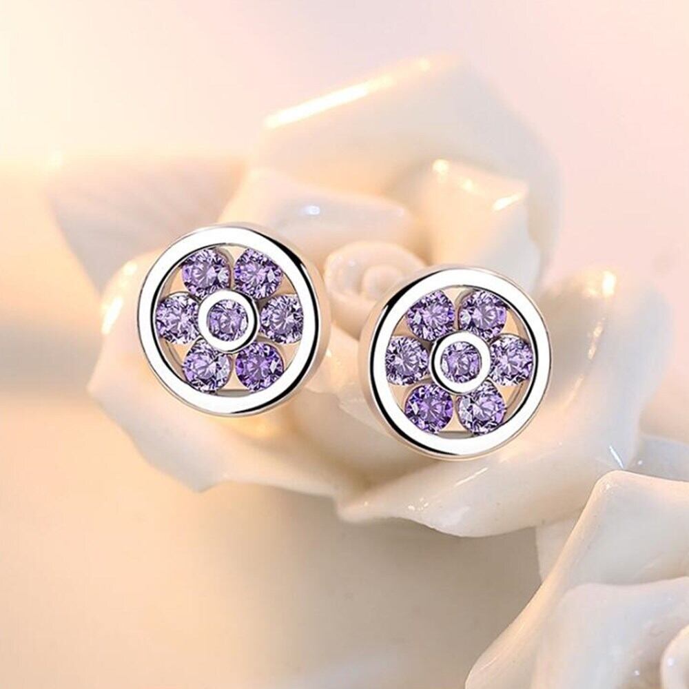 送料無料 NEHZY シルバーメッキ新しいジュエリースタッドピアスダブルラウンドパープルキュービックジルコニアシルバーイヤリング 指輪 銀 風信子石 AE1212332255160603588
