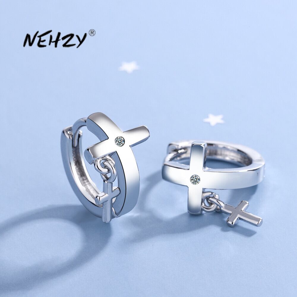 送料無料 NEHZY シルバーメッキ新しいレディースファッションジュエリーキュービックジルコニアクロスシンプルな気質イヤリング 指輪 銀 風信子石 AE121233225580484763369