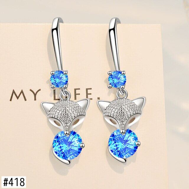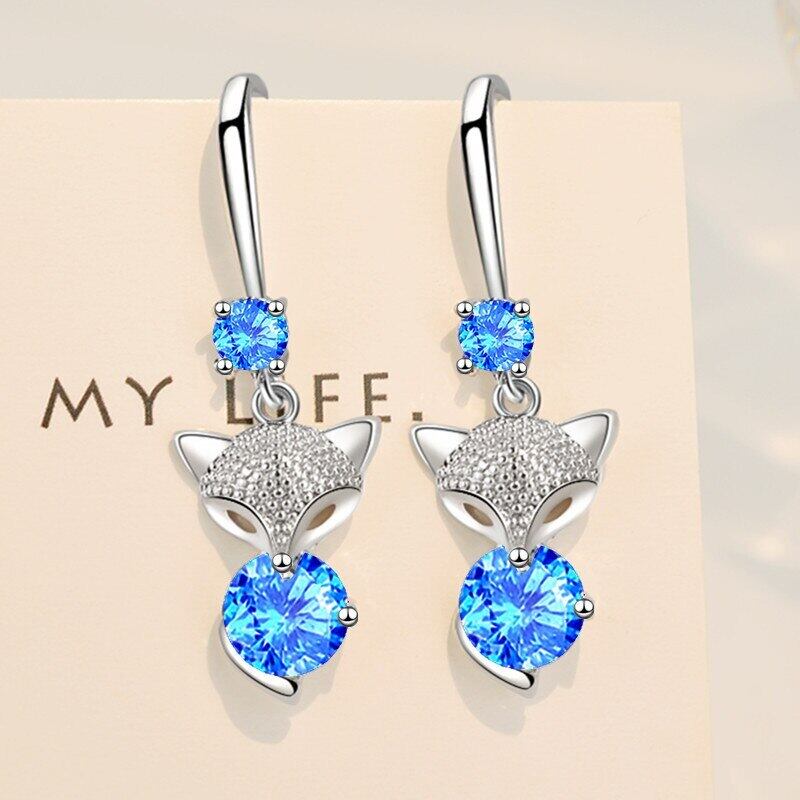 送料無料 NEHZY シルバーメッキ レディース ジュエリー ブルー ピンク キュービック ジルコニア フォックス ロングテル フック イヤリング 指輪 銀 風信子石 AE121233225554496701800