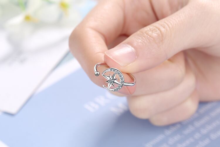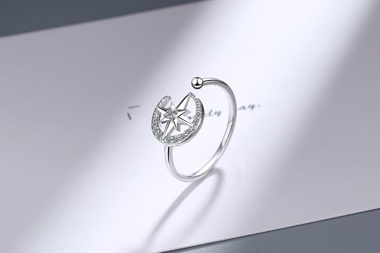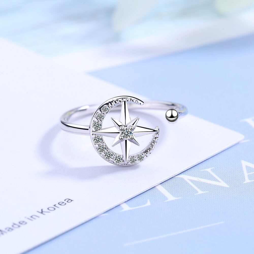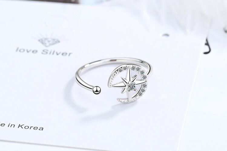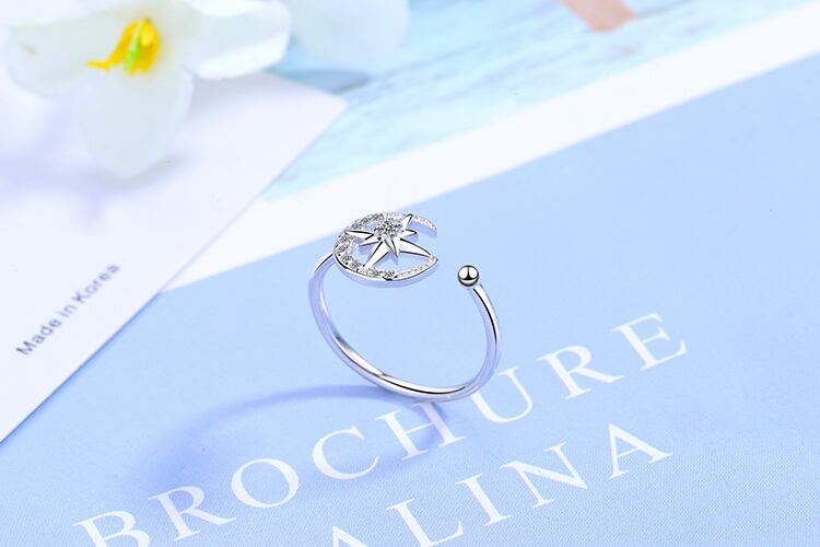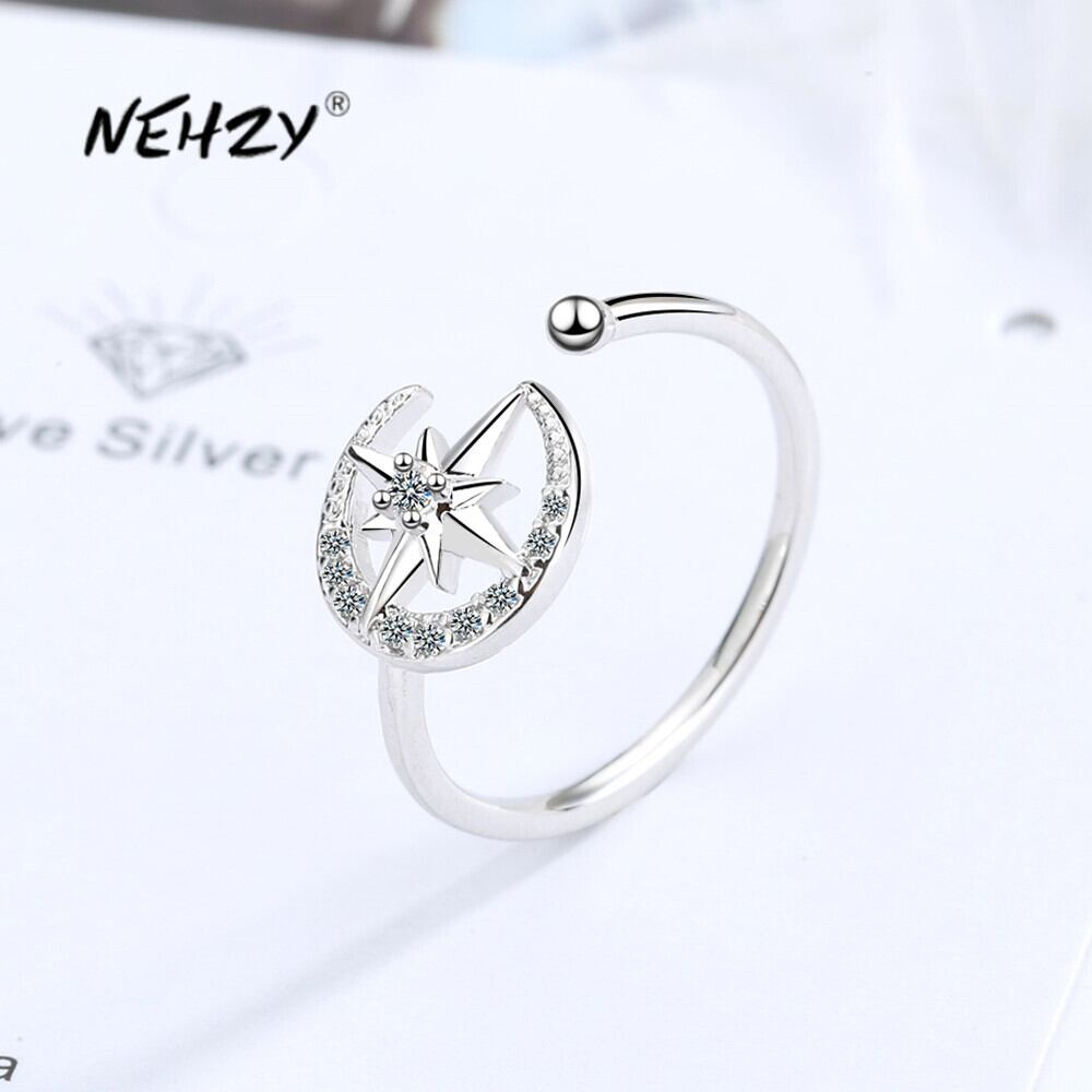送料無料 NEHZY シルバーメッキ女性ジュエリーキュービックジルコニアスタームーンオープンリングサイズ調整可能なリング アジャスタブル 指輪 銀 風信子石 AE121233225519613224790