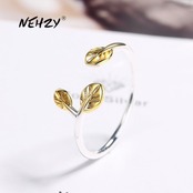 送料無料 NEHZY シルバーメッキ女性ジュエリーゴールデンリーフオープンリング調節可能なサイズ アジャスタブル 指輪 銀 AE121233225540017381490