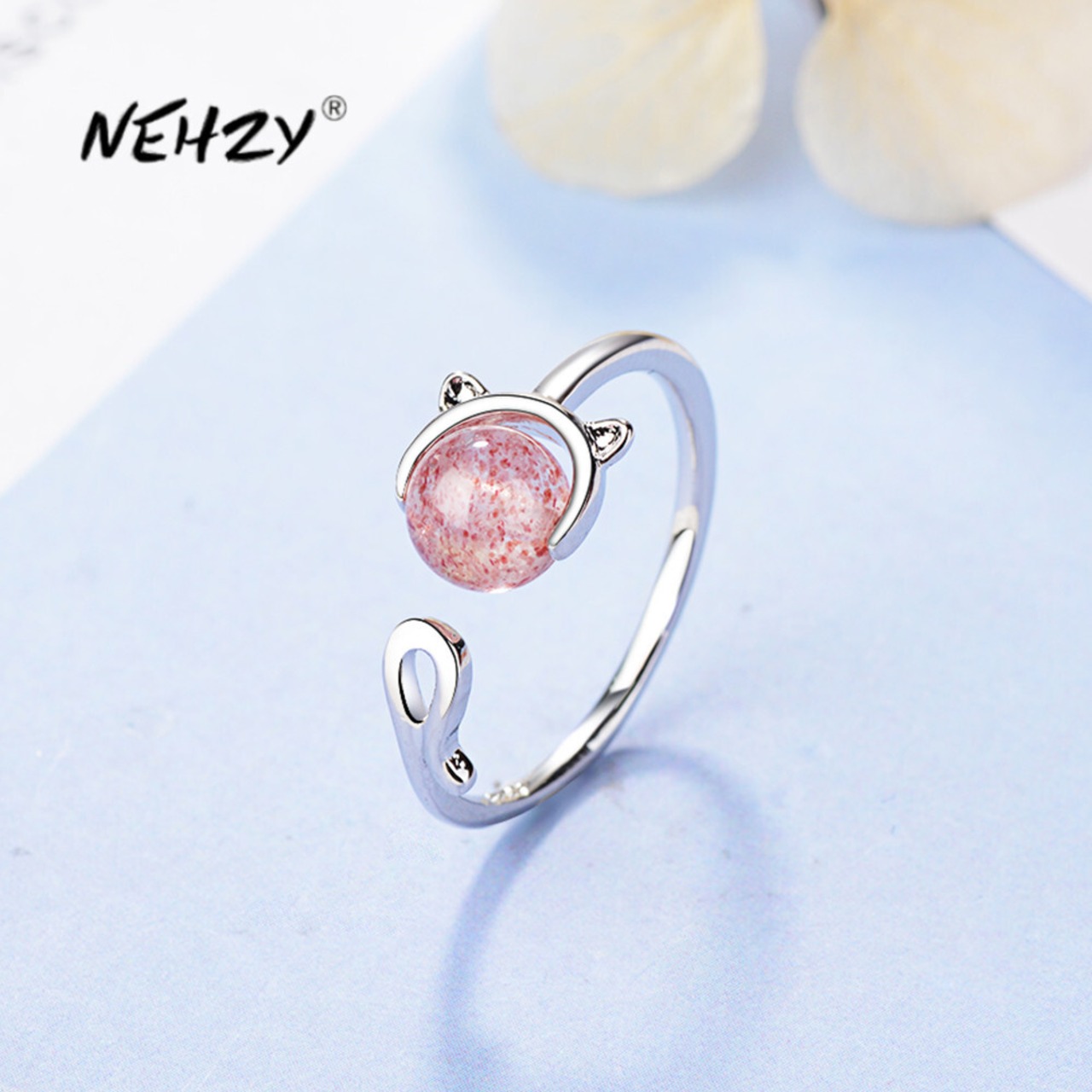 送料無料 NEHZY シルバーメッキ女性ジュエリーピンク瑪瑙子猫シンプルリングサイズ調整可能なリング アジャスタブル 指輪 銀 AE12123322554208261713
