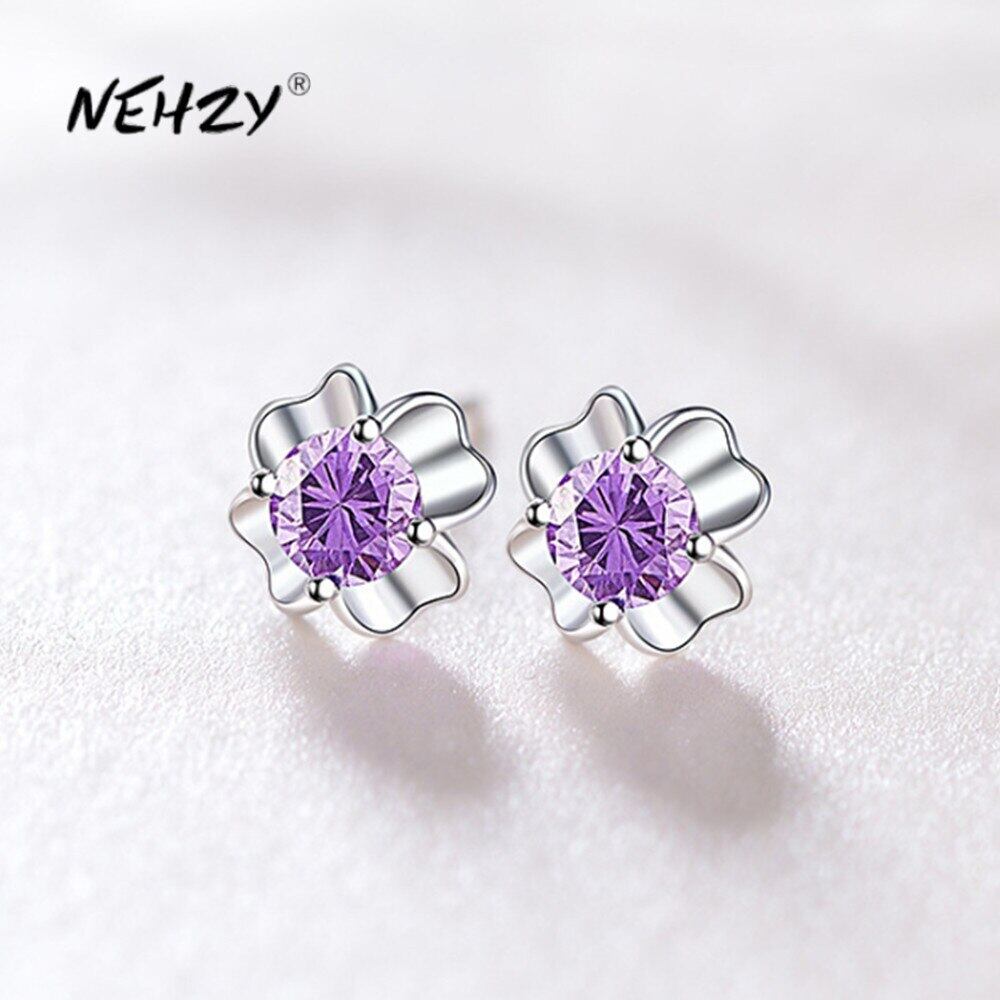 送料無料 NEHZY シルバーメッキ女性ジュエリーパープルキュービックジルコニア四つ葉のクローバーホットイヤリング 指輪 銀 風信子石 AE121233225585436709682