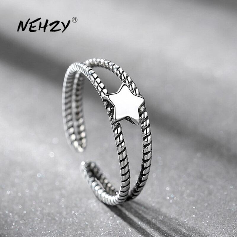 送料無料 NEHZY シルバーメッキリング中空五芒星女性ファッションジュエリー開口部調節可能なリングタイシルバー アジャスタブル 指輪 銀 AE121233225543610282704