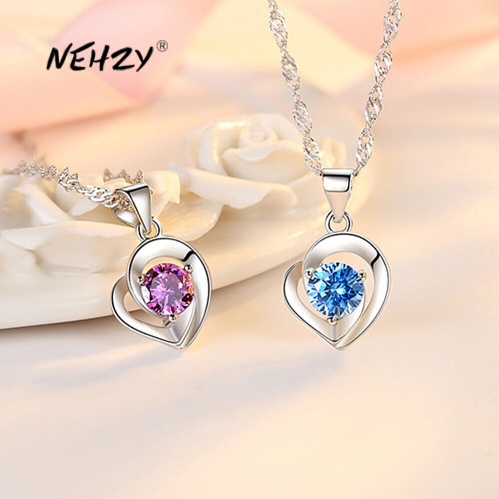 送料無料 NEHZY シルバーメッキ女性ジュエリーキュービックジルコニアハート型中空ペンダントネックレス長さ 45 センチメートル レース 銀 風信子石 AE121233225520320020565