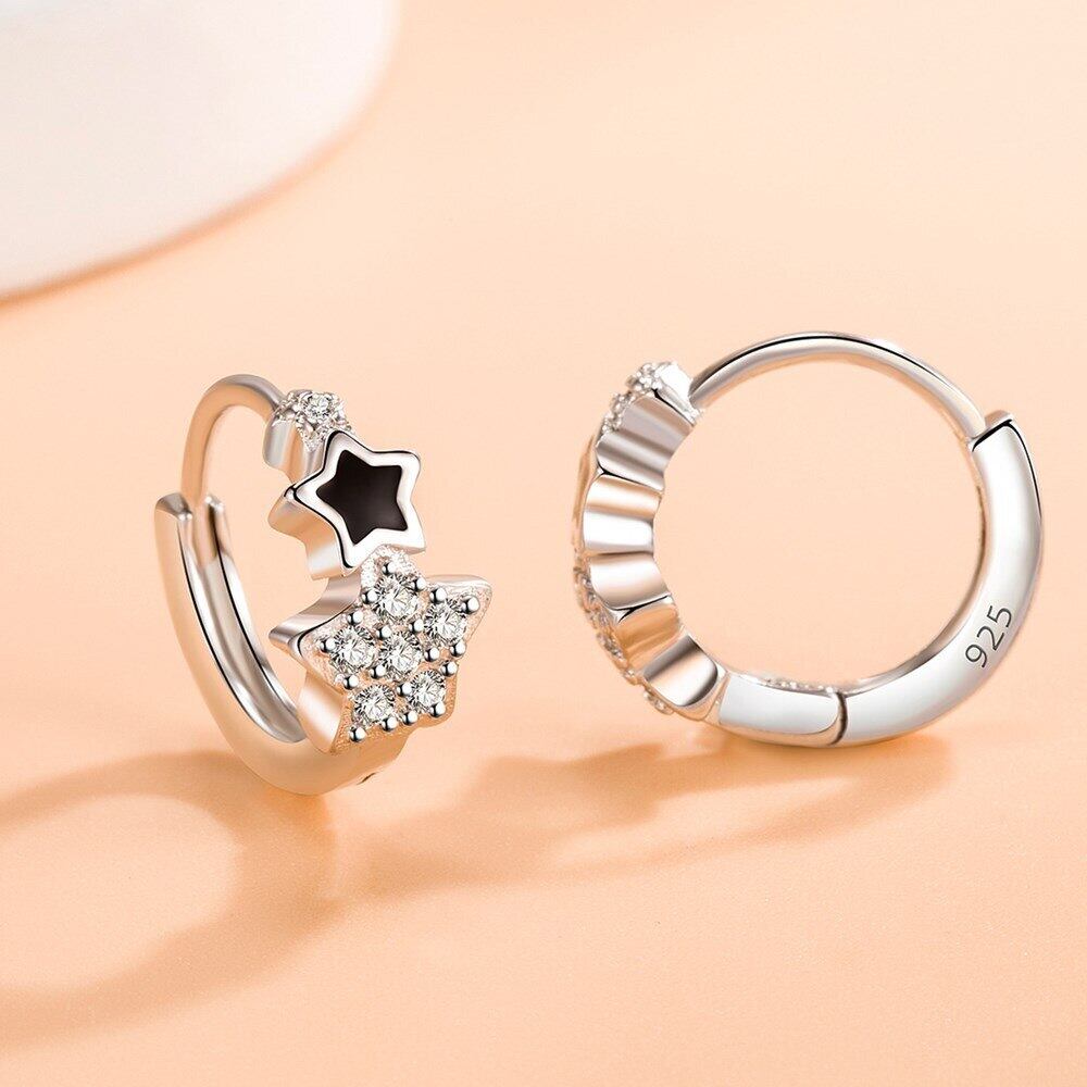 送料無料 NEHZY シルバーメッキ女性ジュエリーキュービックジルコニアシンプルなエポキシブラック五芒星のイヤリング 指輪 銀 風信子石 AE121233225572575429535