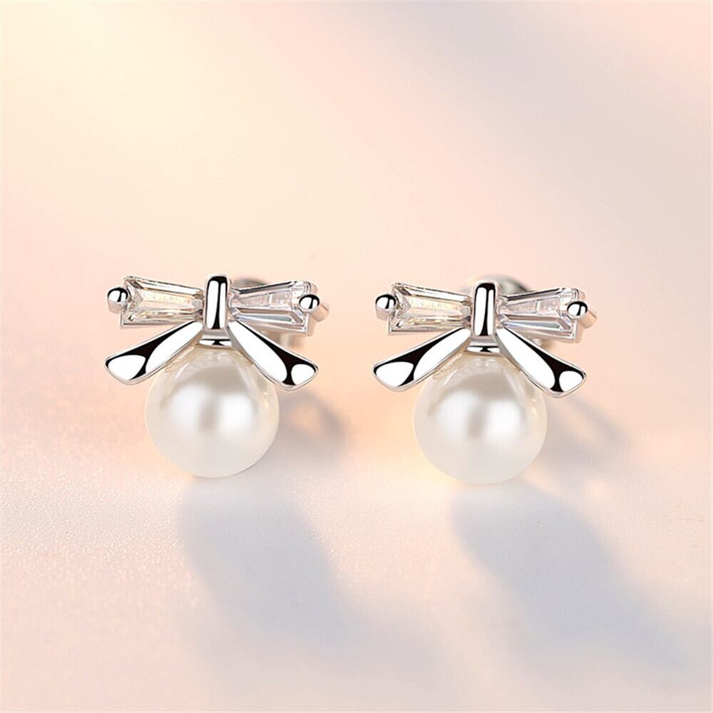 送料無料 NEHZY シルバーメッキジュエリースタッドピアス高級キュービックジルコニアパールイヤリング蝶ネクタイ甘くてシンプルな装身具 6 ミリメートル リボン 大人ガーリー スウィート キュート カジュアル 真珠 指輪 銀 風信子石 AE121233225577220640301