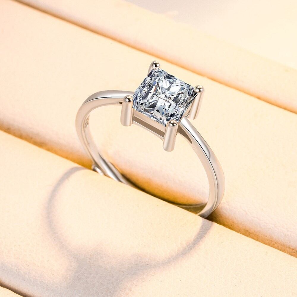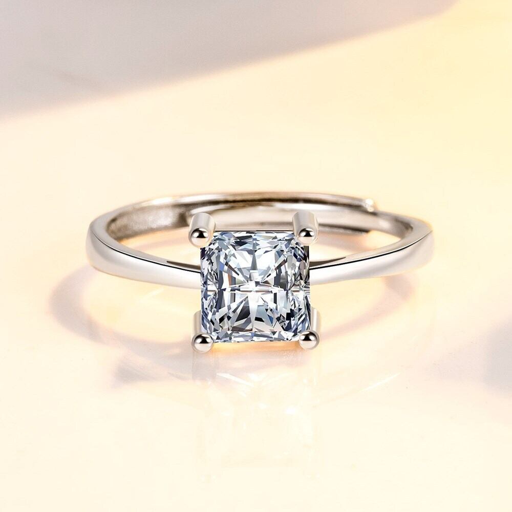 送料無料 NEHZY シルバーメッキ女性ジュエリーキュービックジルコニアシンプルなスクエア 4 本爪開口部調節可能なリング アジャスタブル 指輪 銀 スクウェア 風信子石 AE121233225527068251660