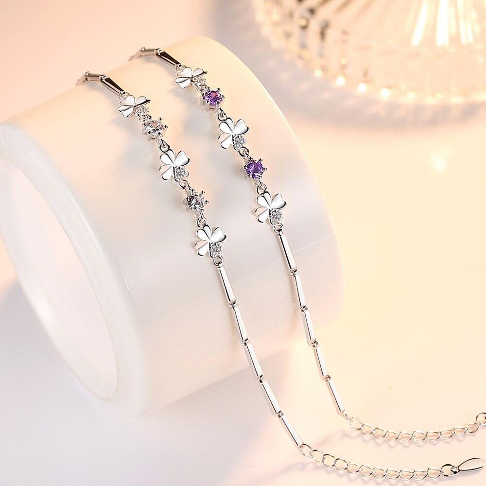 送料無料 NEHZY シルバーメッキ新しい女性ファッションジュエリーキュービックジルコニア四つ葉のクローバーブレスレット長さ 16.3 センチメートル + 4.5 センチメートル 銀 風信子石 AE121233225557176897348