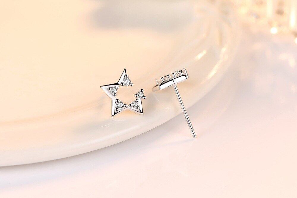 送料無料 NEHZY 925 シルバー針スタッドピアス女性ジュエリーレトロシンプルな中空五角形クリスタルジルコンイヤリング 指輪 銀 AE12123322557723926710
