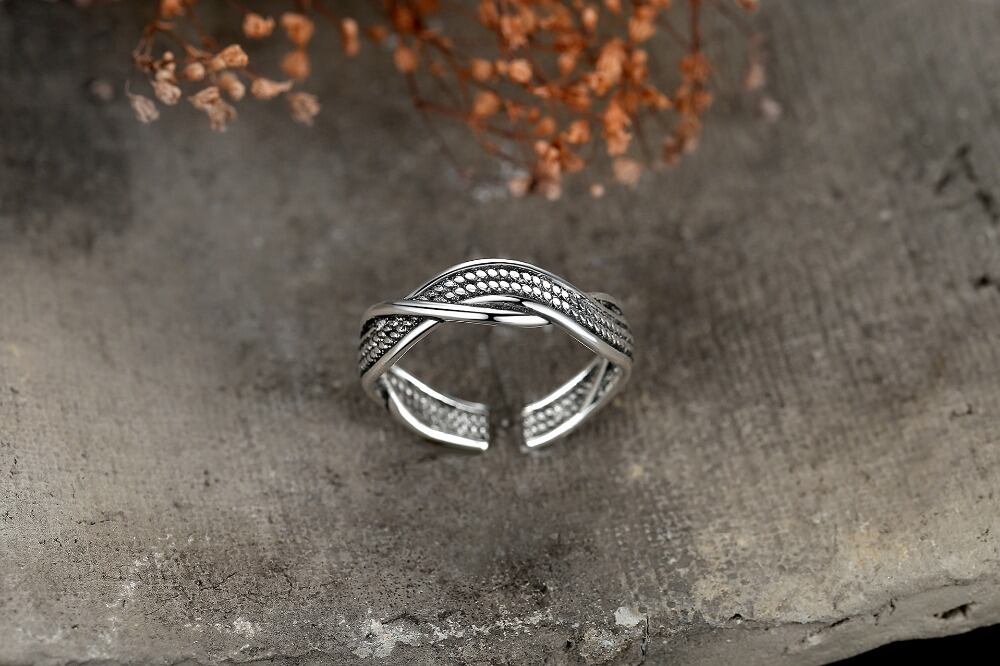 送料無料 NEHZY シルバーメッキ新ジュエリー女性リングレトロブラックオープンサイズ調節可能なタイシルバーマンロープ織りリング アジャスタブル 指輪 銀 AE121233225599950323622