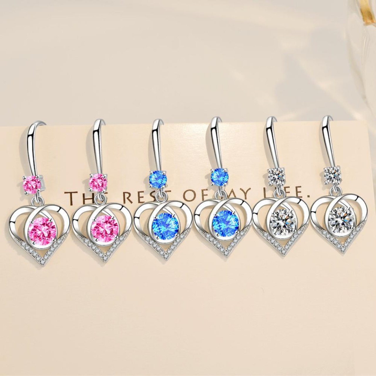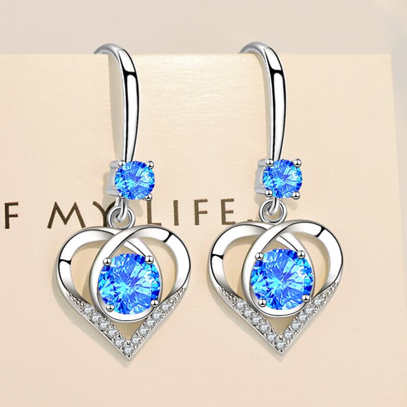 送料無料 NEHZY シルバーメッキレディースジュエリーキュービックジルコニア中空ハート型ロングテルフックイヤリング 指輪 銀 風信子石 AE121233225564694131160