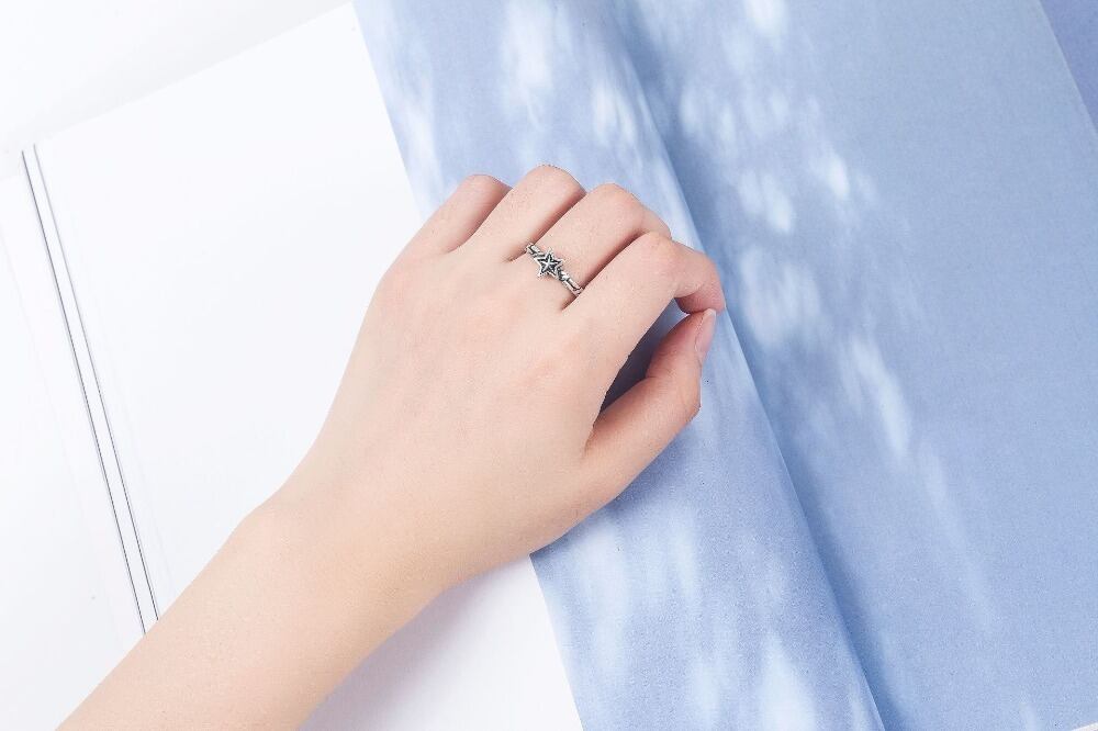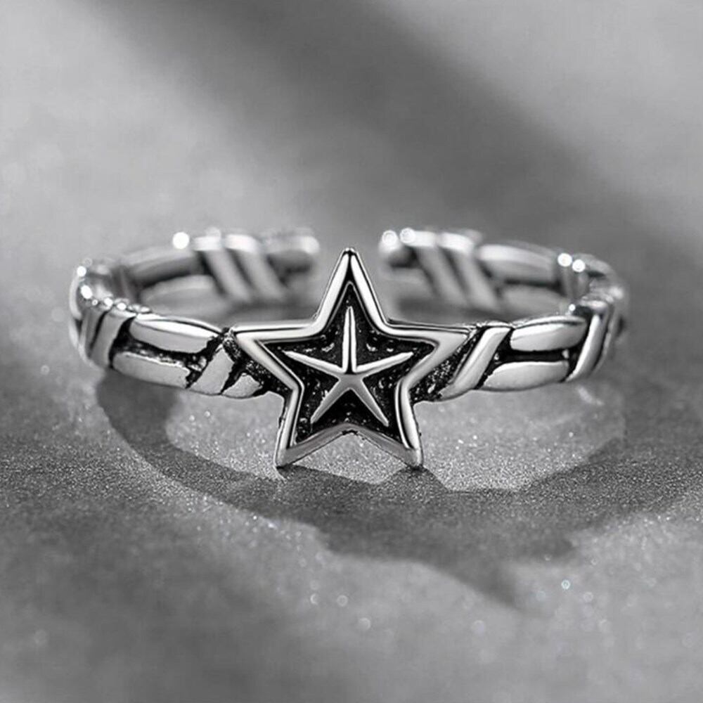 送料無料 NEHZY シルバーメッキ新ジュエリー女性リングレトロ中空黒五角形開口部サイズ調整可能なタイシルバーマンリング ブラック アジャスタブル 指輪 銀 AE121233225564025468143